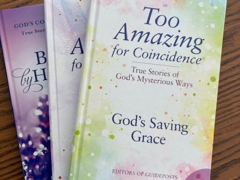In other news, I am delighted to share that my essay, “A Son’s Dream and a Mother’s Prayer,” is included in book no. 6 of Guidesposts publication’s Too Amazing for Coincidence: God’s Saving Grace. If you, like me, need a little encouragement that God is really with us in these thundery days, I hope you’ll read my story about the day God protected one of my children.